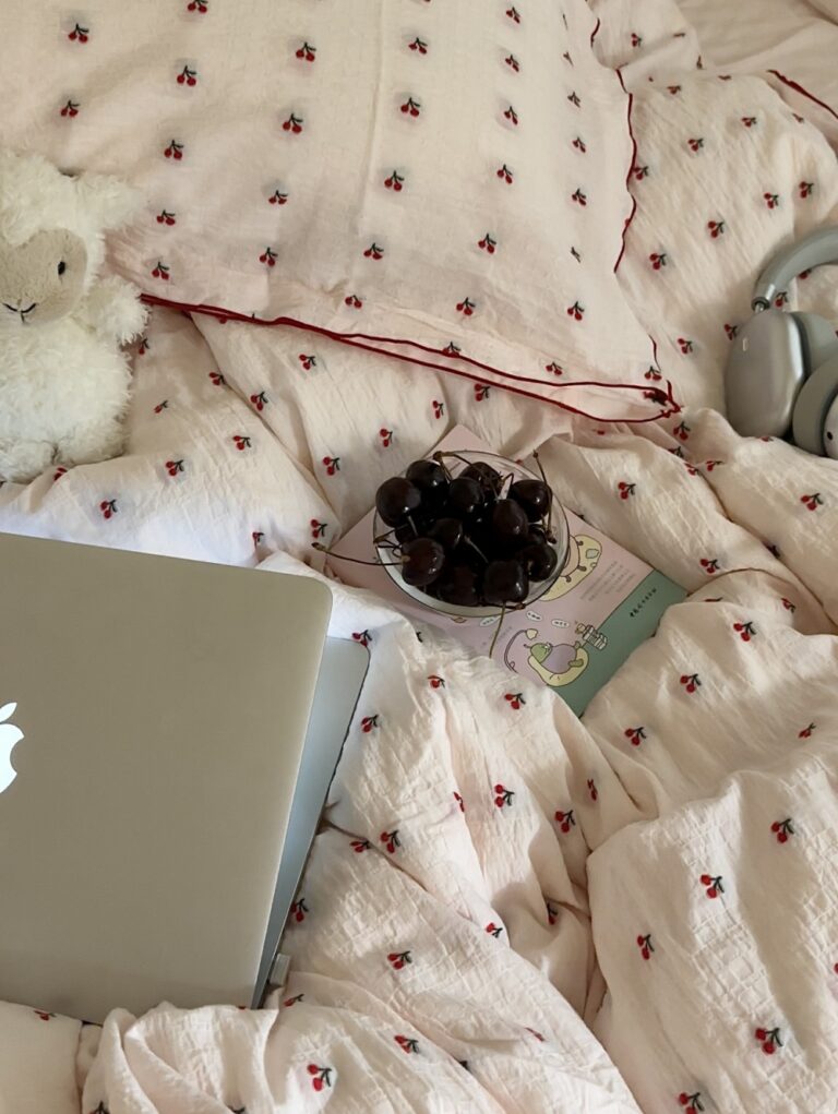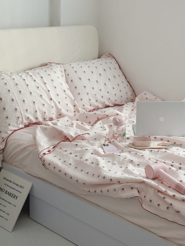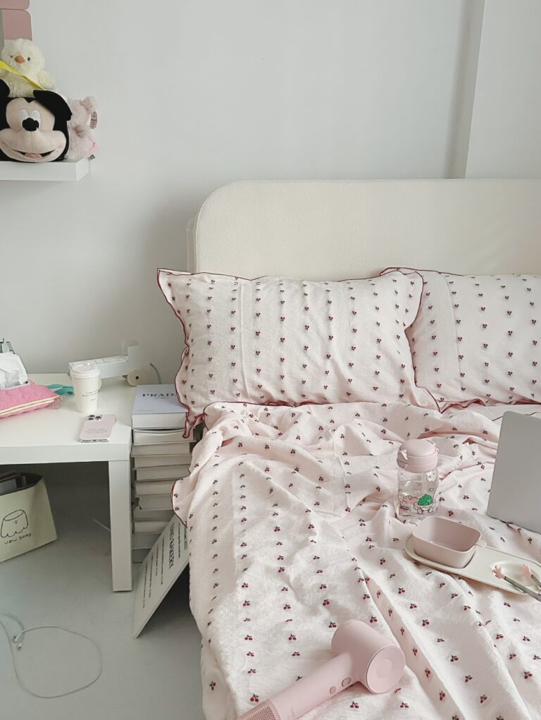 - Sweet Aesthetic:Pale pink base with red trims—transform your bed into a cherry orchard’s romance, right at home.