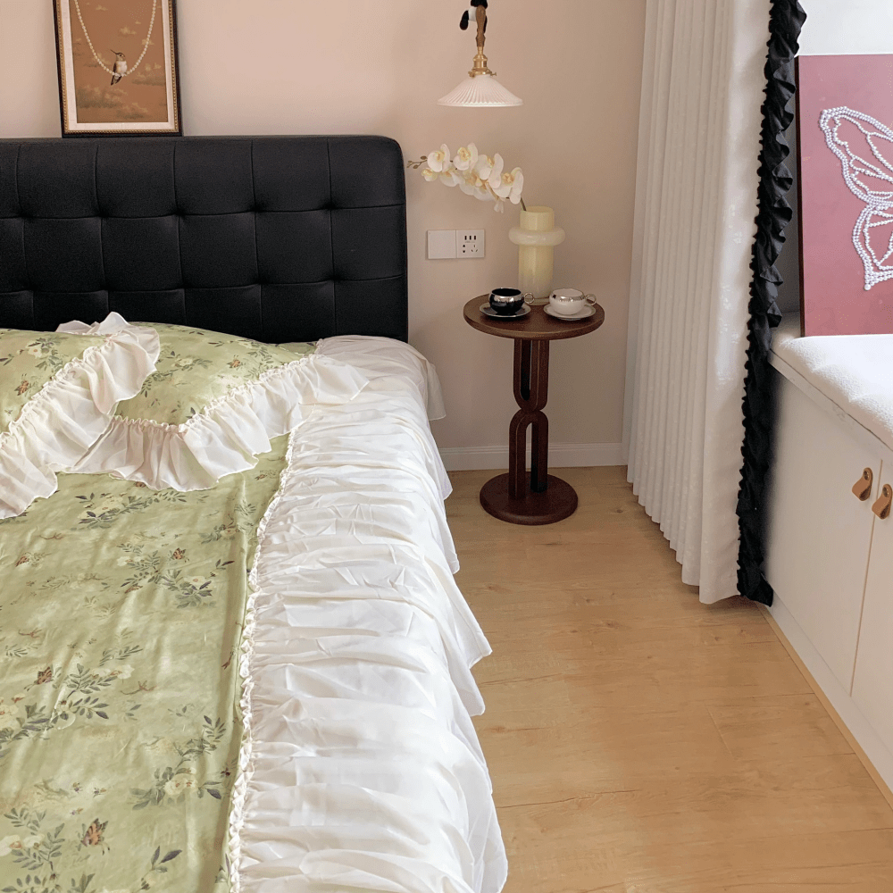 The bedding bundle features a fresh light green color, as soft and tranquil as the first rays of dawn in spring. The vintage floral patterns are inspired by the ancient French gardens. With delicate textures and beautiful shapes, they exude a strong French charm and are a perfect fit for all bedroom styles, instantly elevating the room’s aesthetic.